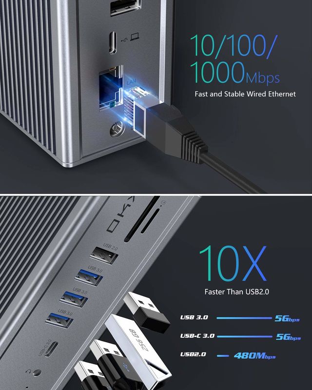 ডিসপ্লেলিঙ্ক ডকিং স্টেশন ট্রিপল মনিটর থান্ডারবোল্ট পিডি 120 ওয়াট ট্রিপল 8 কে ডিসপ্লে